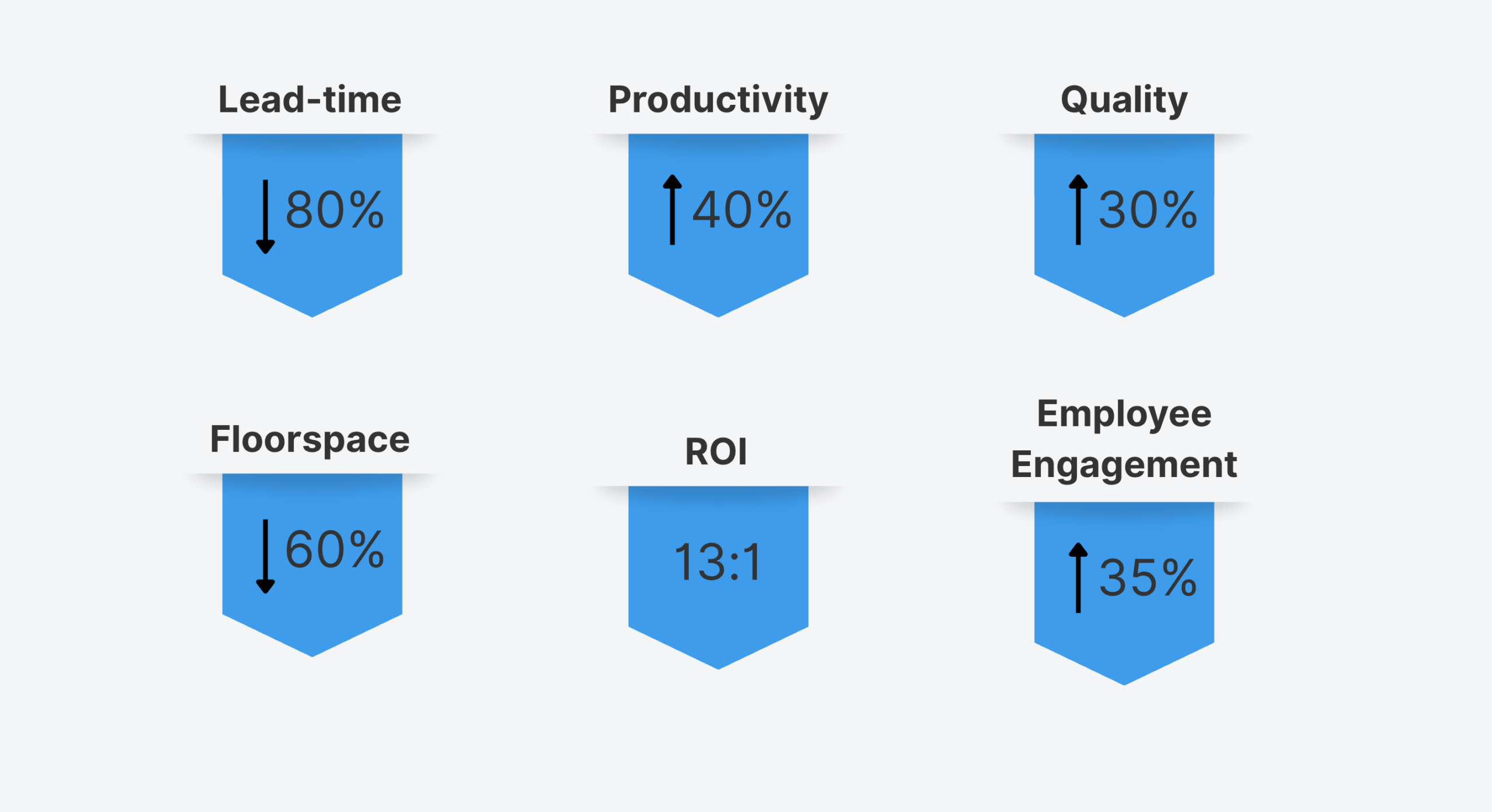 We focus on your most important Value Stream, we implement the necessary elements of the Lean Production System, we develop the skills of your people and we get it to achieve its target KPI performance in a sustainable way.